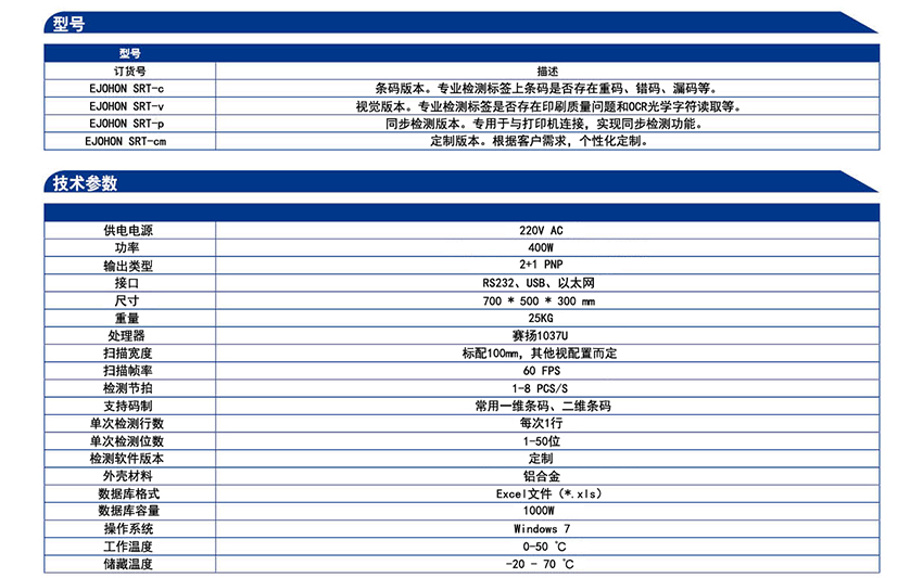 EJOHON SRT-v 視覺防重(視覺版本,專業(yè)檢測(cè)標(biāo)簽是否存在印刷質(zhì)量問題和OCR光學(xué)字符讀取等)