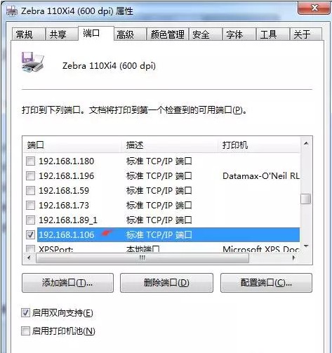 若是沒有對應(yīng)打印機(jī)IP地址的端口則先選擇“添加端口”,如下: