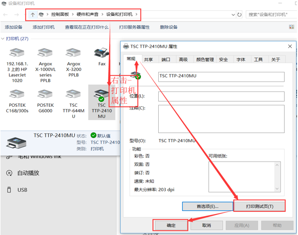 1.7 右擊打印機屬性-點常規(guī)選項,再點擊打印測試頁,