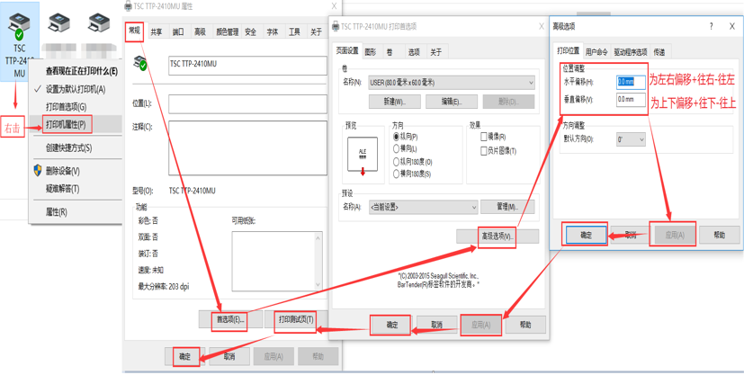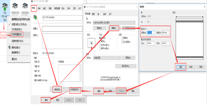 -點確定-點應(yīng)用-打印測試頁-確定-如下圖(標(biāo)簽尺寸設(shè)置):