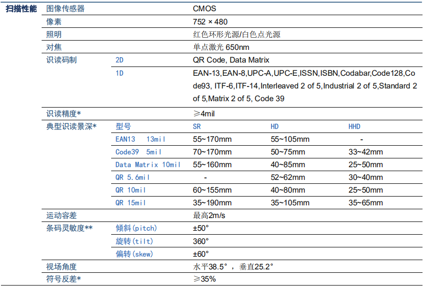 多種型號滿足多場景 提供 HHD、HD、SR 三種距離版本,條碼掃描器可滿足不同的應用需求。
