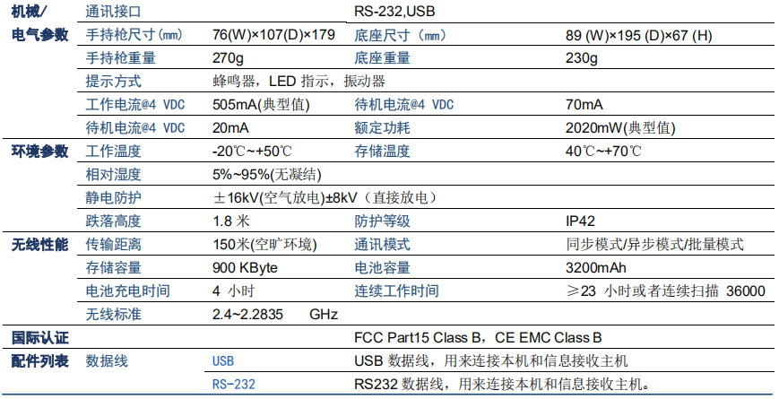 高防護(hù)工業(yè)結(jié)構(gòu)設(shè)計(jì) 手持條碼掃描器具備IP42防護(hù)等級(jí),并可承受從1.8米高的地方到地面的反復(fù)跌落,具備優(yōu)秀的可靠性和穩(wěn)定性。